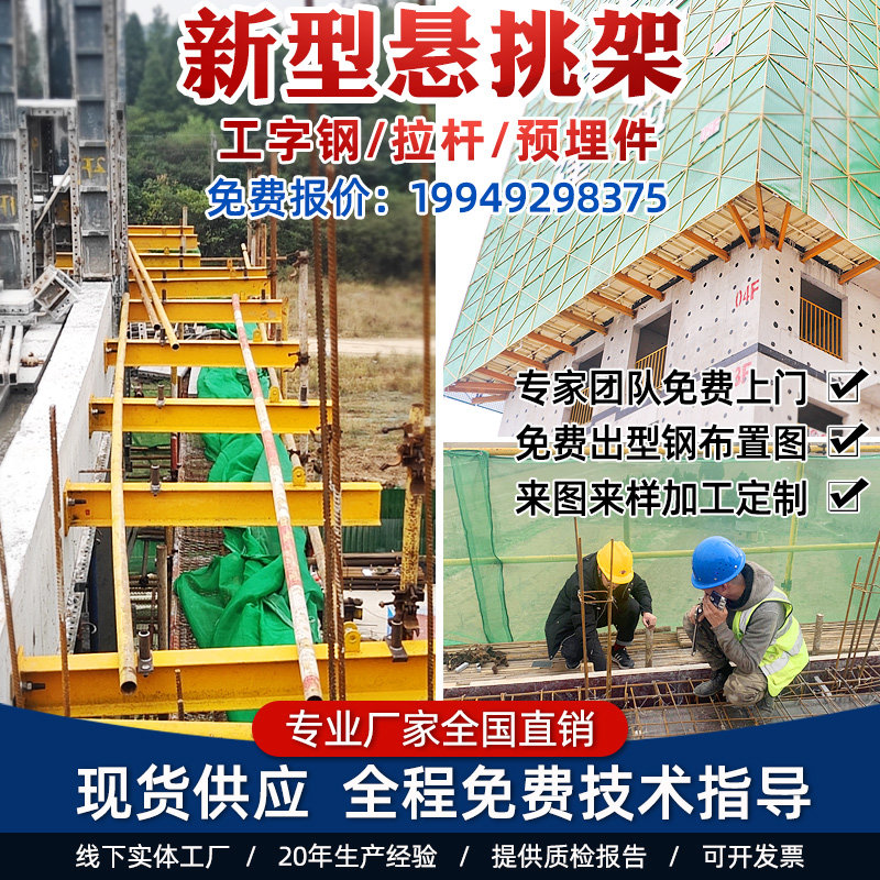 New type of suspended beam I-shaped steel suspended frame embedded in flower basket type cable-stayed position pile construction external wall bearing frame