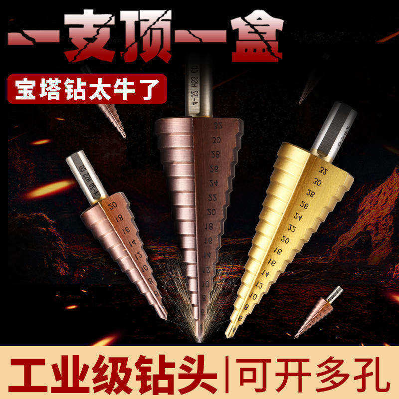 Pagoda drill head universal punching tapered stepped steel ultra hard reaming drill with special drilling machine for stainless steel metal