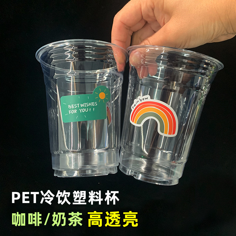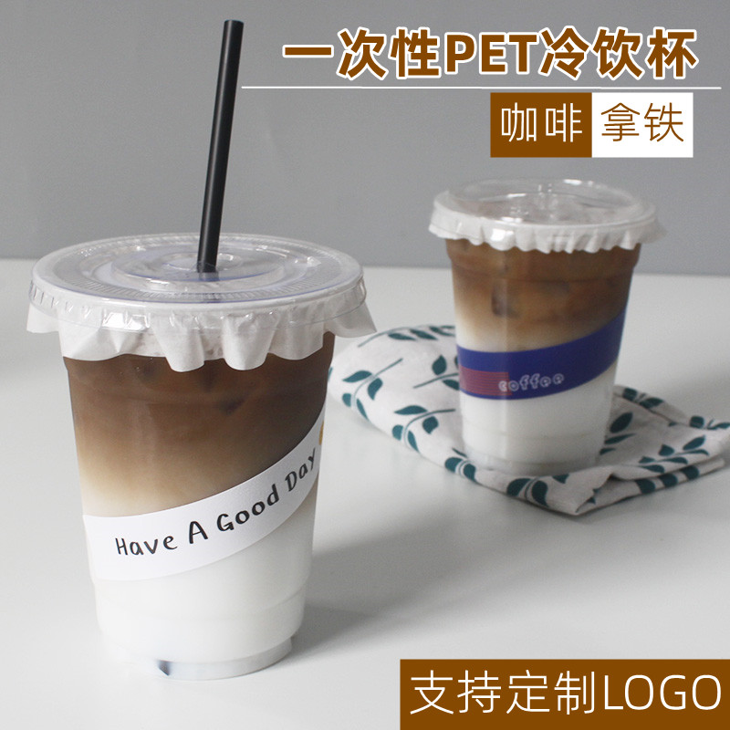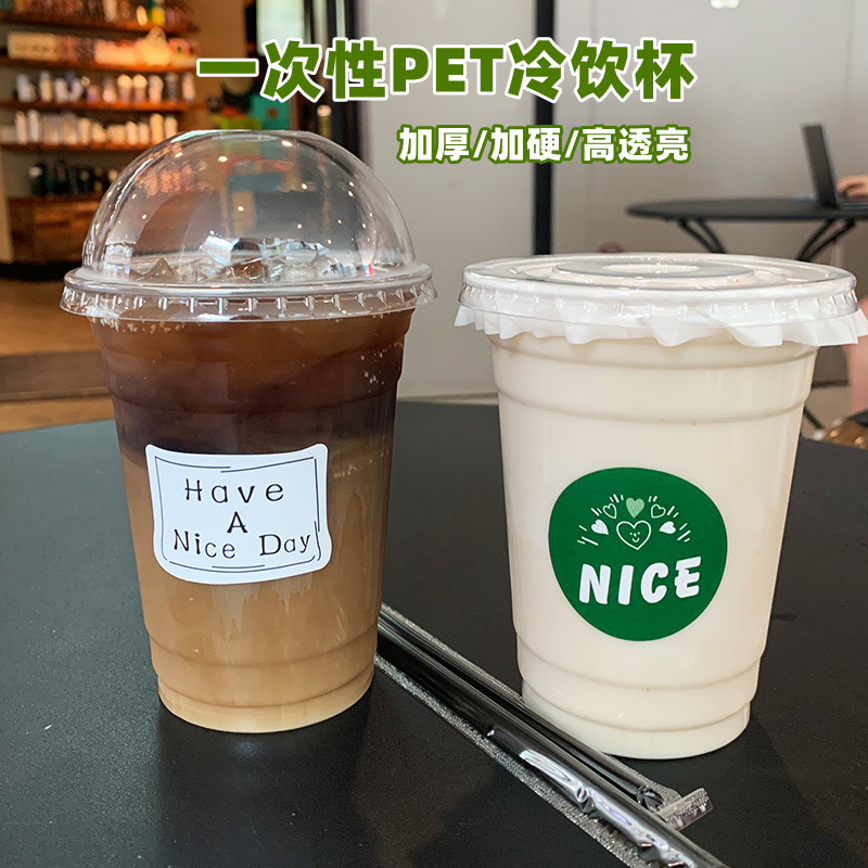Disposable cup thickened PET plastic milk tea lemon cold drink 98 caliber coffee latte with lid high transparency customization