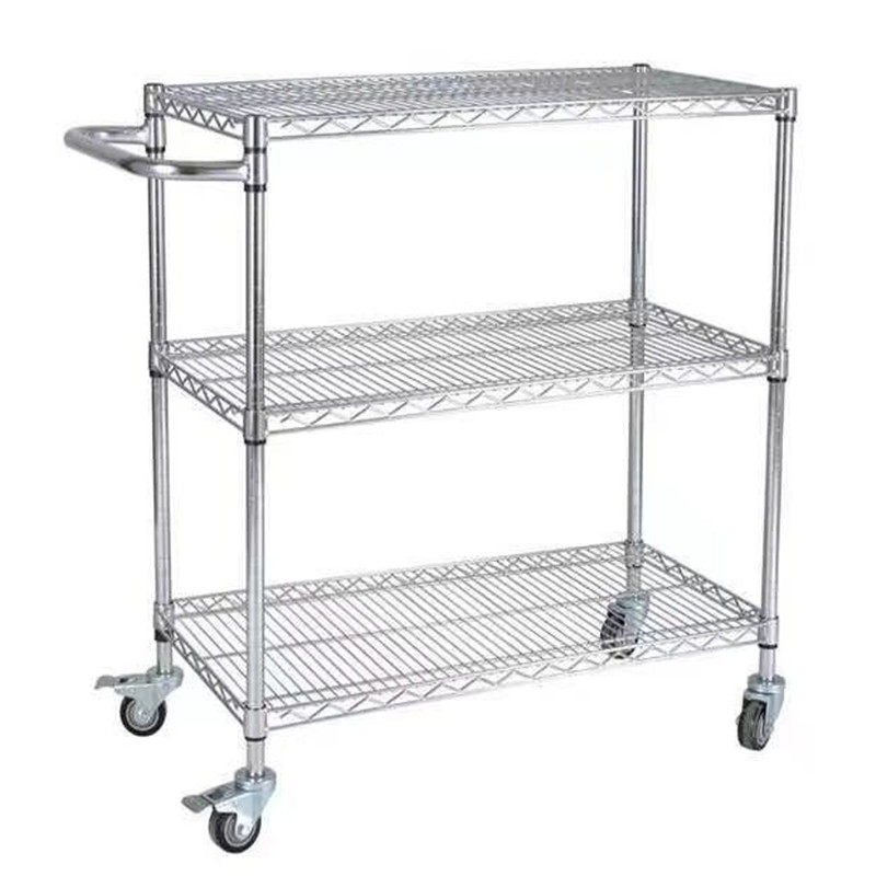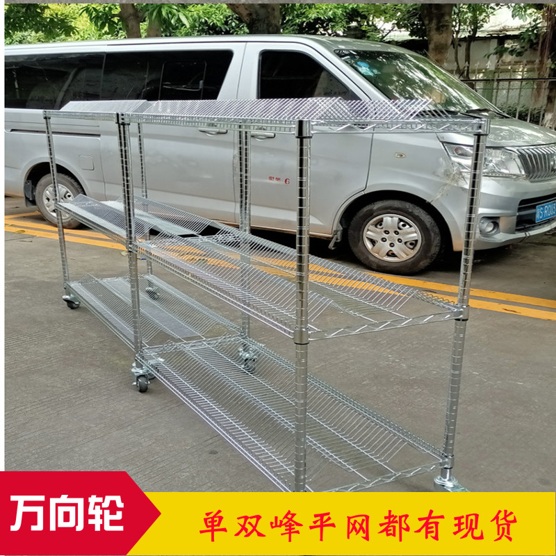 SMT single and double peak mesh material tray anti-static electroplating chrome trolley warehouse mobile shelf with wheels can be logistics table