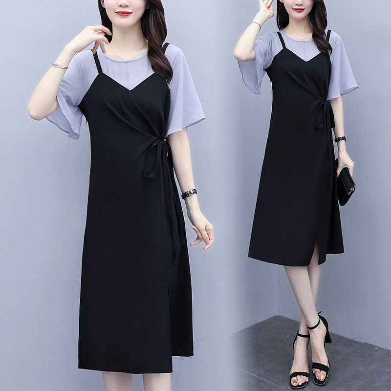 Leading Mommy Summer New Suckling Breast-feeding Fashion Out Fashion Shows Slim Temperament Fake Two Pieces