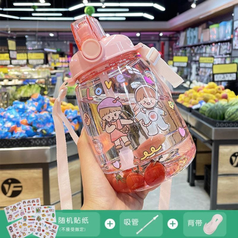 Large Capacity Water Glass Female Summer Super Large Web Red Cups Cute portable with straw Baby bag 1000ml Kettle Bottle