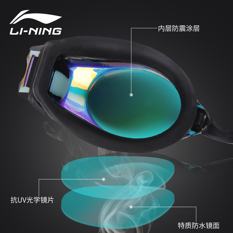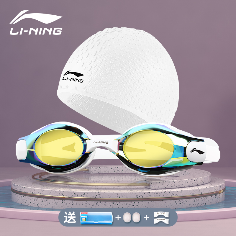 Li Ning swimming goggles female waterproof anti-fog HD myopia optional long hair swimming cap suit coated diving glasses equipment