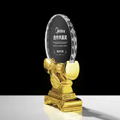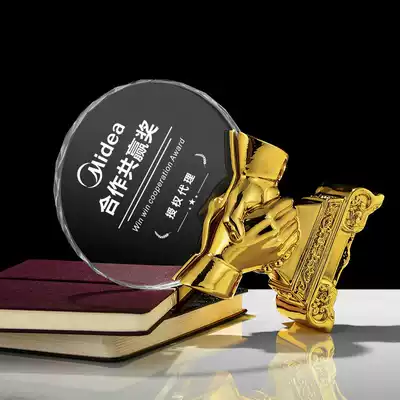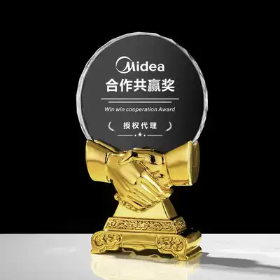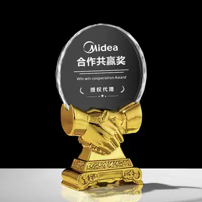 Work together to win-win creative handshake Crystal trophy custom resin gold-plated medal Enterprise business award lettering