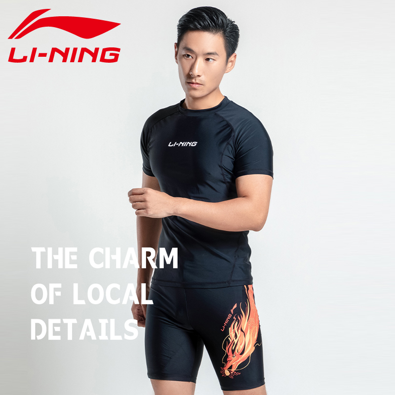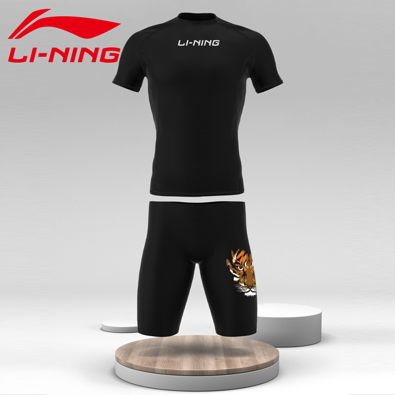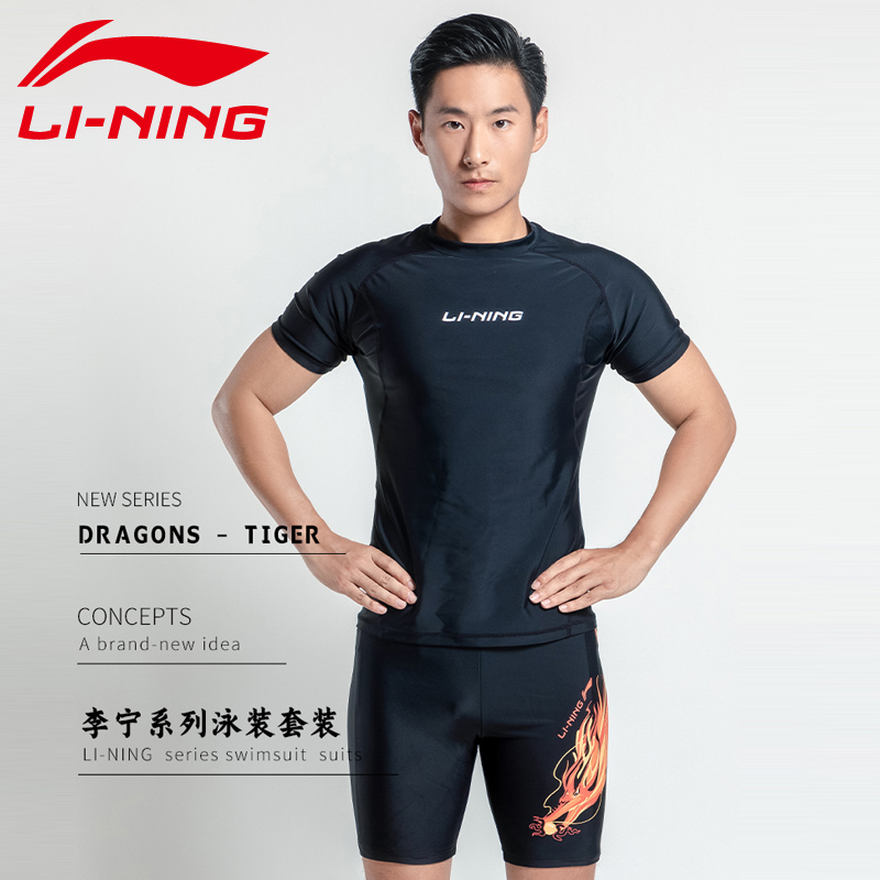 Li Ning men's swimsuit swimming trunks anti-embarrassing swimming equipment hot spring pants quick-drying shorts anti-fog swimming goggles swimming cap set