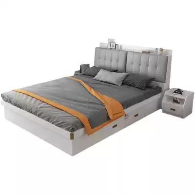 Bed Modern minimalist storage double bed Nordic Master Bedroom 1 8 meters large wedding bed soft bag bed small apartment tatami bed