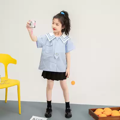 College style parent-child shirt female summer 2021 New Girl shirt cartoon print cotton short sleeve top thin