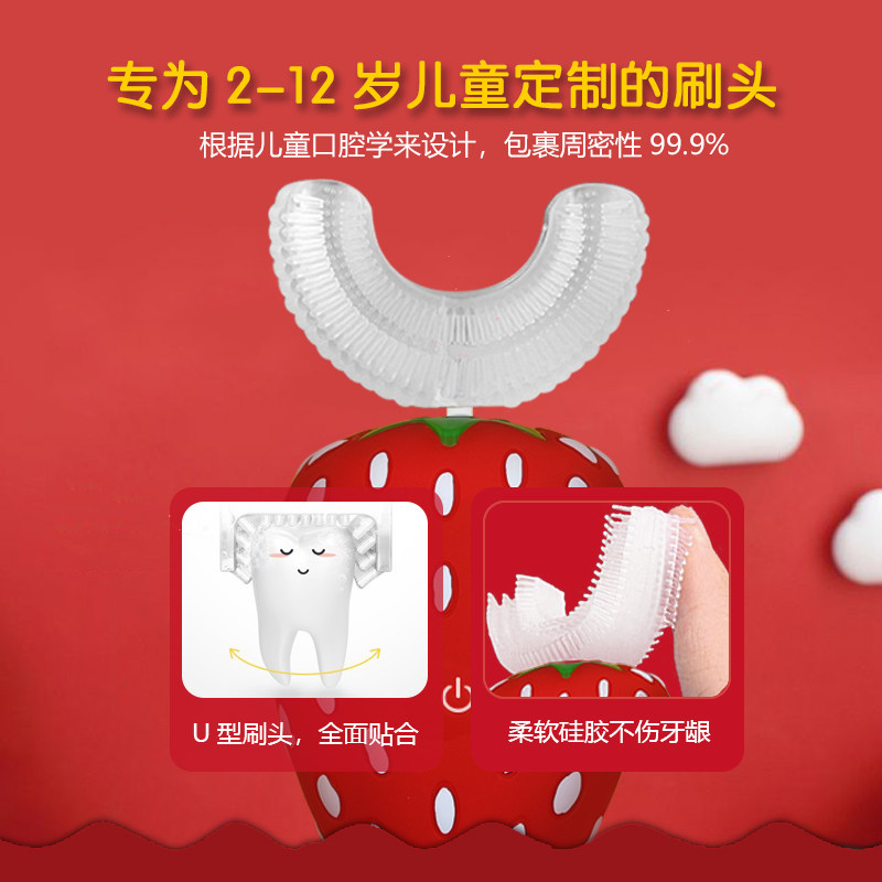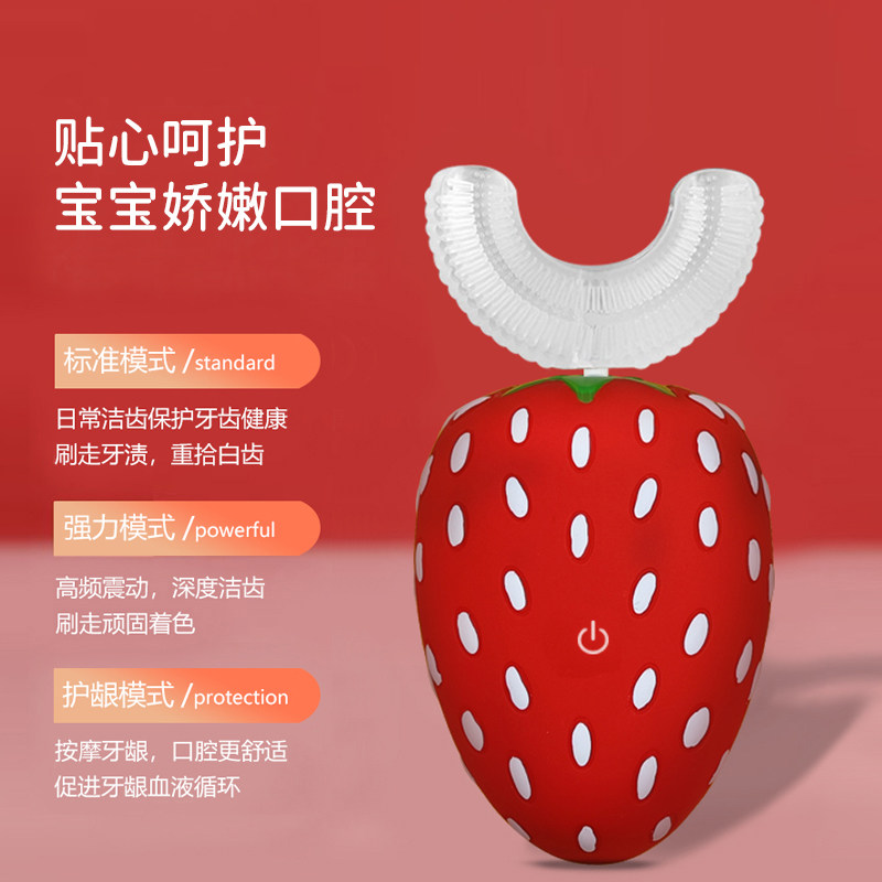 Dental nurse U-shaped electric toothbrush children's red strawberry sonic baby mouth with rechargeable intelligent automatic toothbrush
