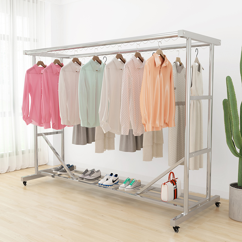 Drying rack floor-to-ceiling indoor stainless steel drying hanger double pole household hanger multifunctional balcony Outdoor
