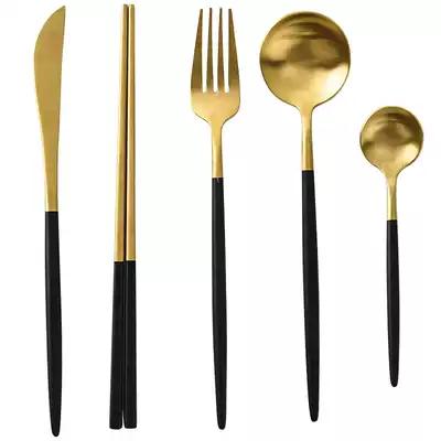Knife fork large spoon small spoon chopsticks red knife fork large spoon chopsticks black knife fork large spoon chopsticks black knife fork large spoon chopsticks pink knife fork large spoon small spoon chopsticks White Knife fork