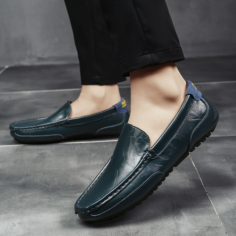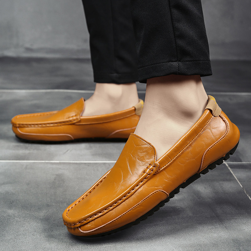 Spring bean-bean shoes 2022 New men's leather casual leather shoes Soft leather driving with a foot pedal Summer 100 hitch