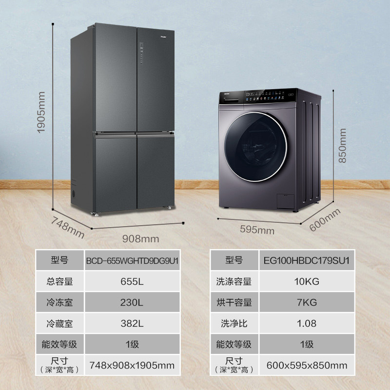 Haier refrigerator washing machine package 655L energy saving and open four doors 10 kg washing dryer automatically
