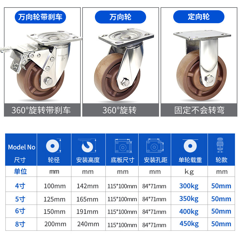 5 inch heavy duty stainless steel oven resistant to high temperature 300 degrees caster 6 inch steam room universal wheel 8 inch glass fiber bakelite wheel