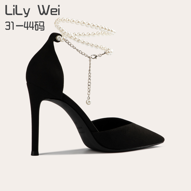Lily Wei2022 pearl heels summer size 40-43 stiletto heels 41 sandals women's size 313233 head