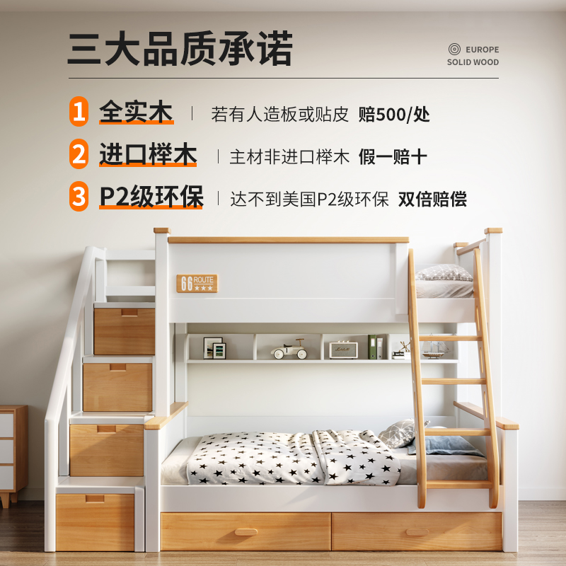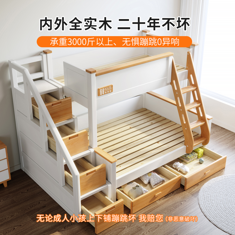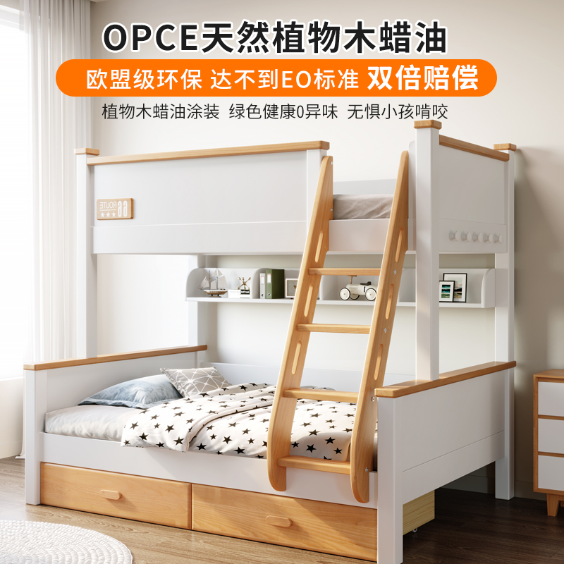 Beech high and low bed Full solid wood children's bunk mother bed multi-function adult adult bunk combination wooden bed