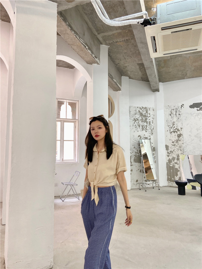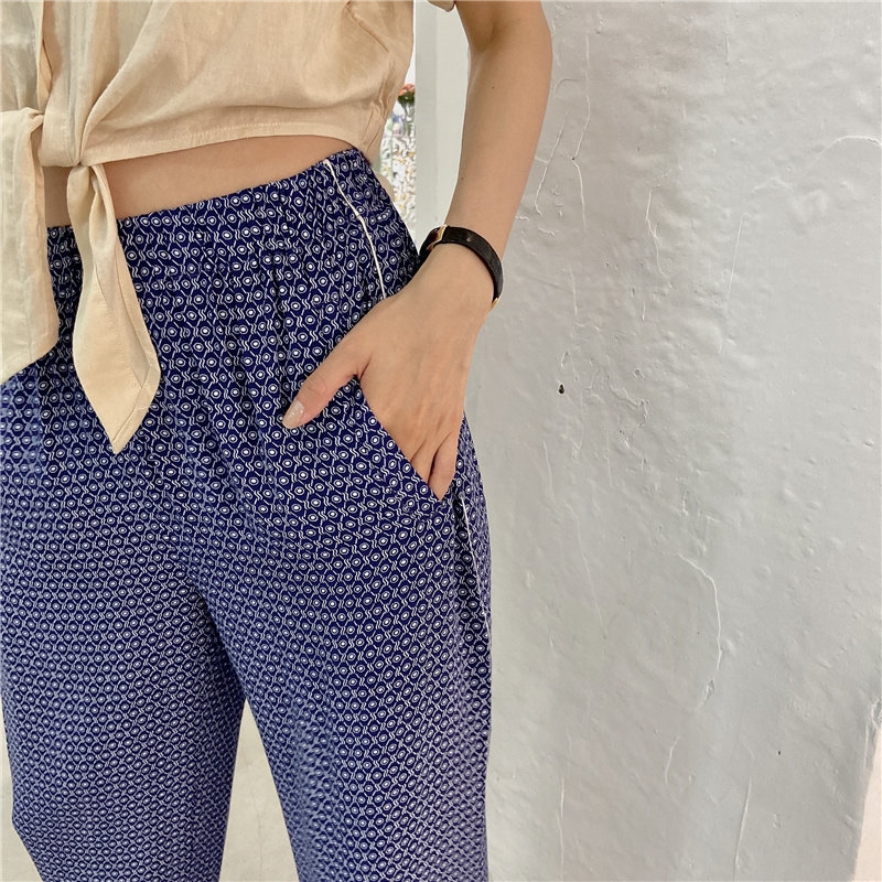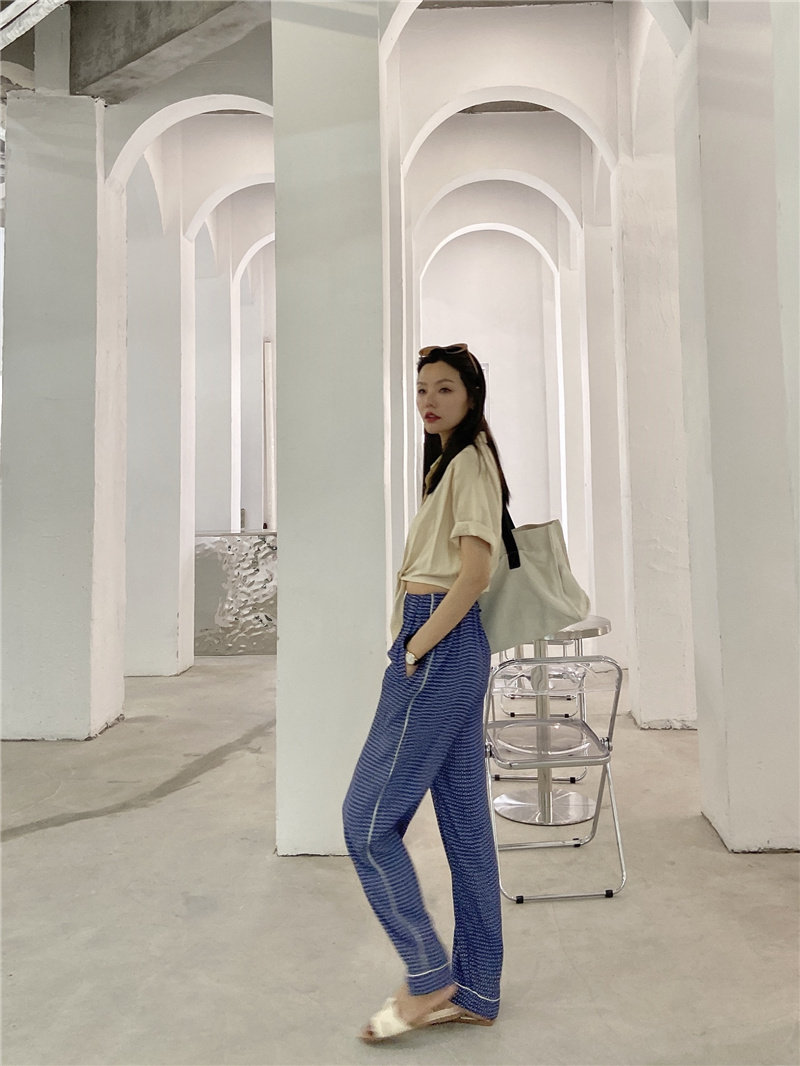 Xiaoxiaola 1937 limited edition texture cool pants lazy pants elastic waist wide leg pants cigarette pants trousers high waist temperament