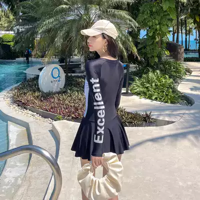 Swimsuit women's summer 2021 new conservative one-piece belly cover thin long sleeves sunscreen student large size sports hot spring swimsuit