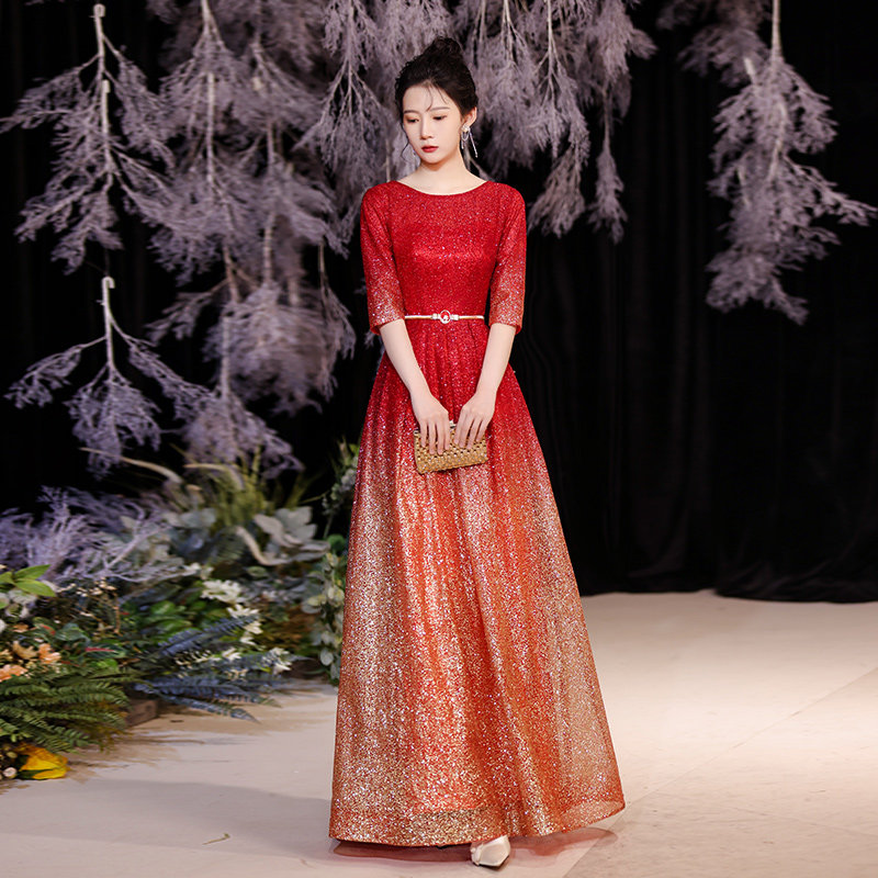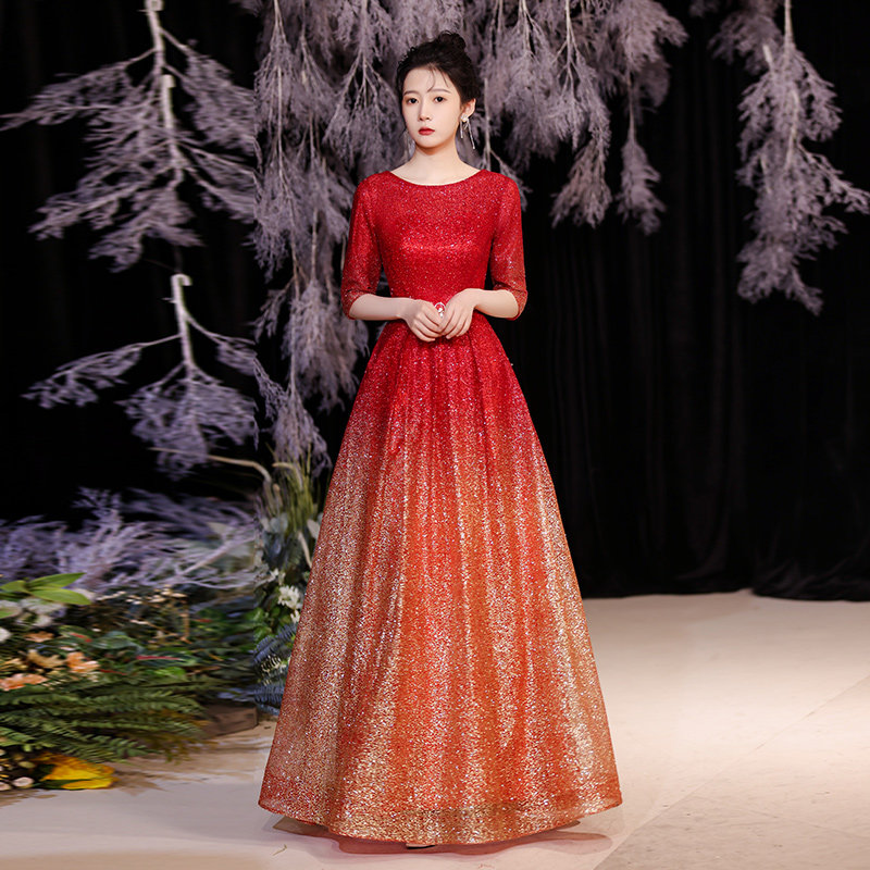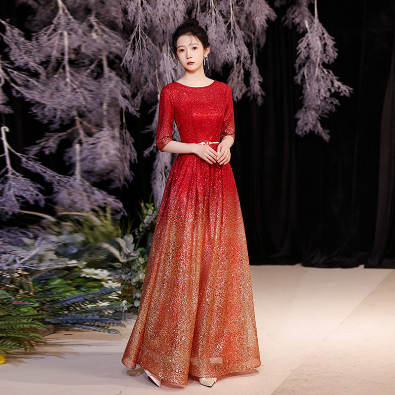 Evening dress female banquet temperament high-end light luxury ladies gradient chorus performance costume host sequin dress summer