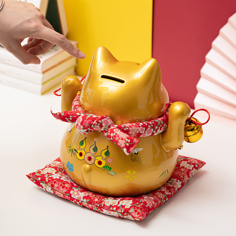 Golden Lucky Cat Ornament Size Fortune Cat Ceramic Japanese Saving Money Deposit Box Store Opening Creative Gift