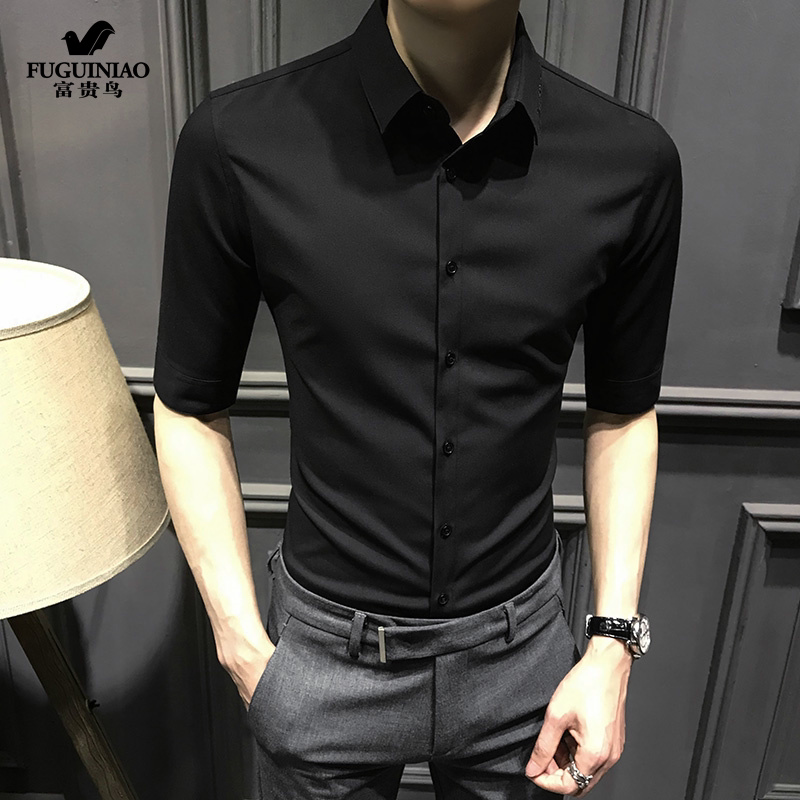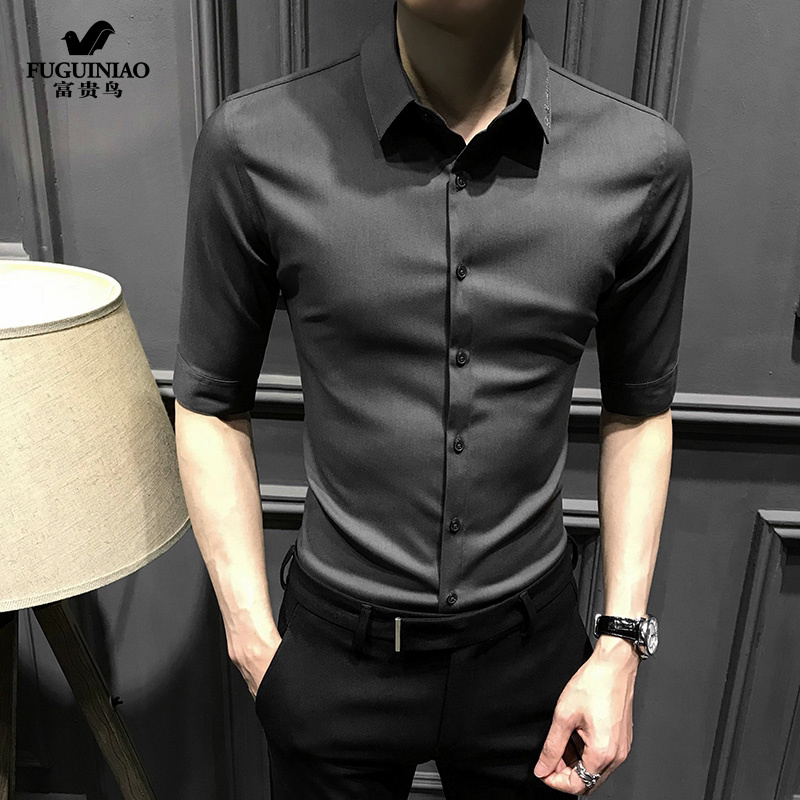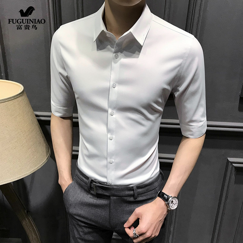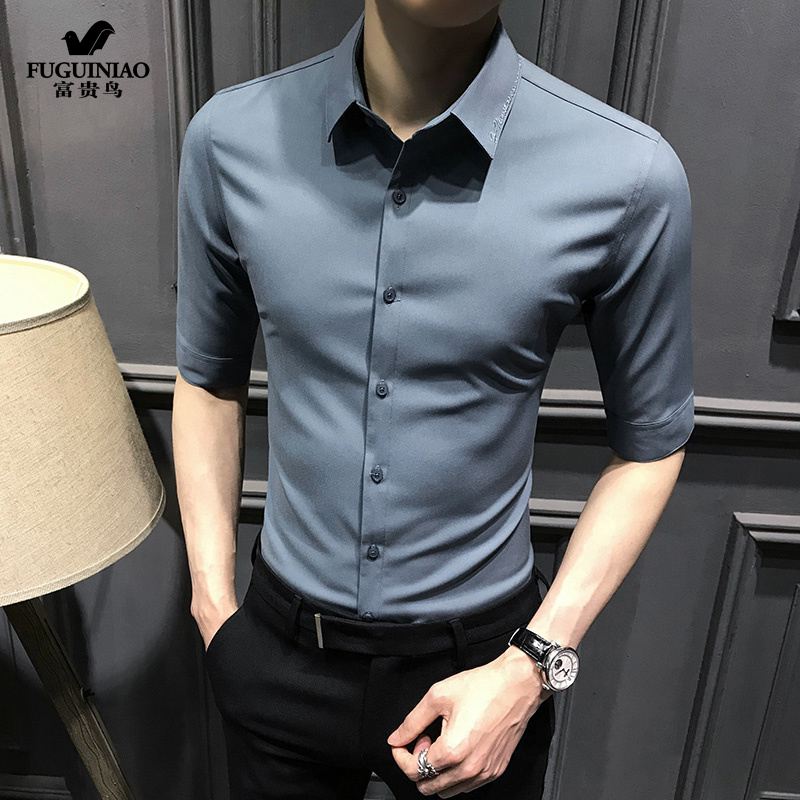 Fugui bird 50% sleeve shirt male half sleeve 2021 Summer new Korean version light lavish body short sleeve ice silk shirt