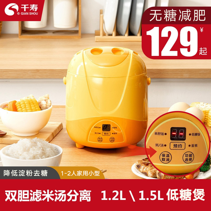 Mini electronic pot Small 1-2 people Low sugar Home Small filter rice soup Separation No sugar multifunction 1 Eat Electric Cooker