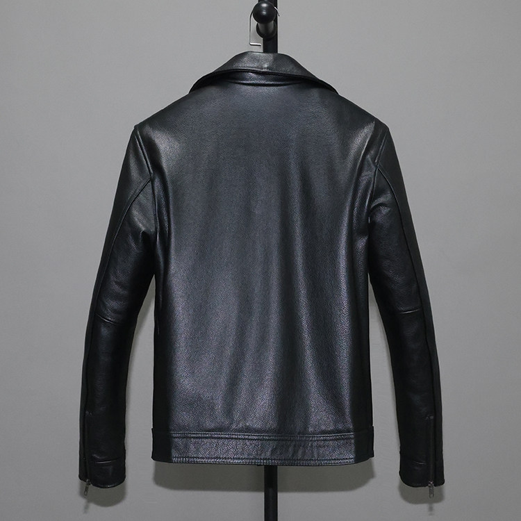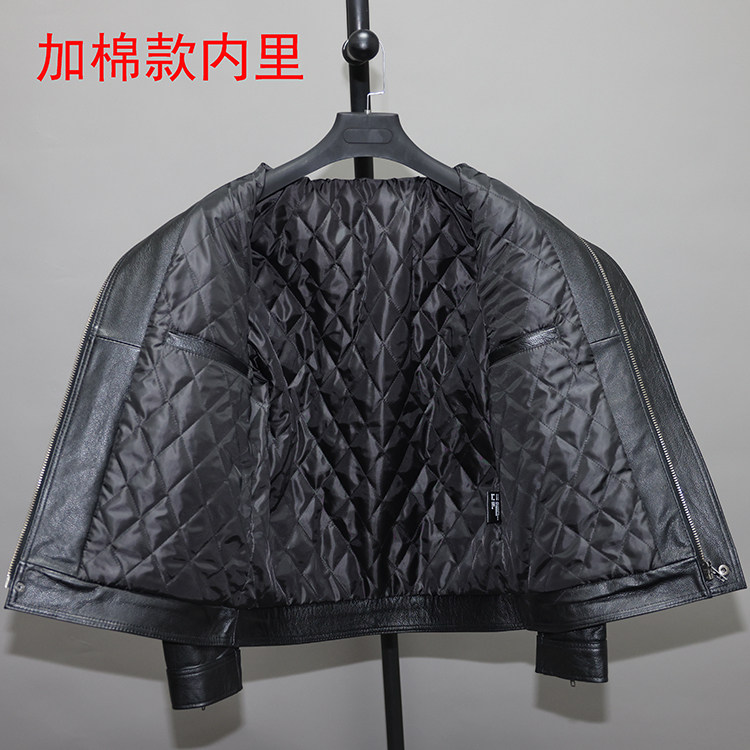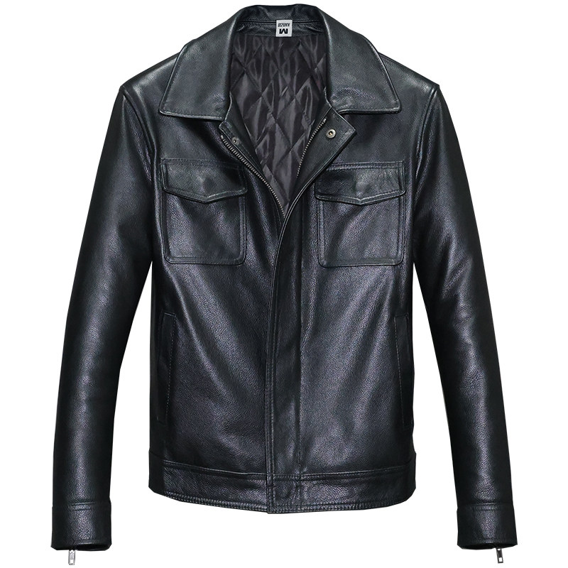 First layer soft cowhide leather jacket men's slim short lapel casual overalls jacket plus cotton jacket multi-pocket ge