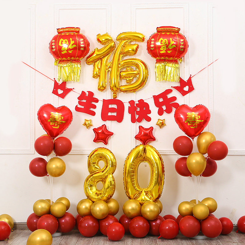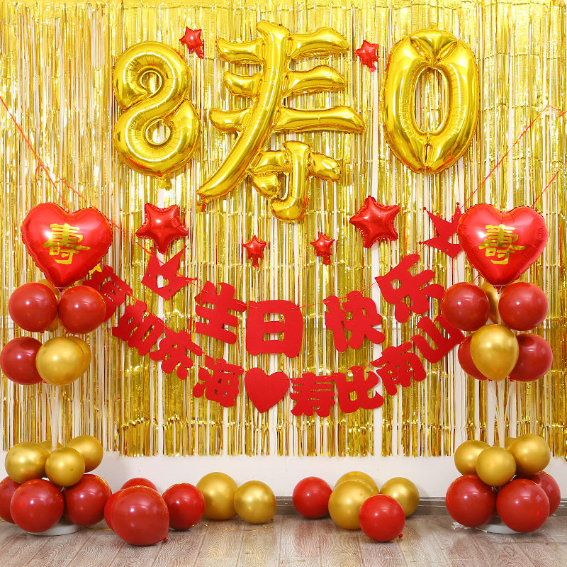 Elderly birthday party birthday elders birthday grandparents 60 80 years old background wall scene decoration balloon arrangement