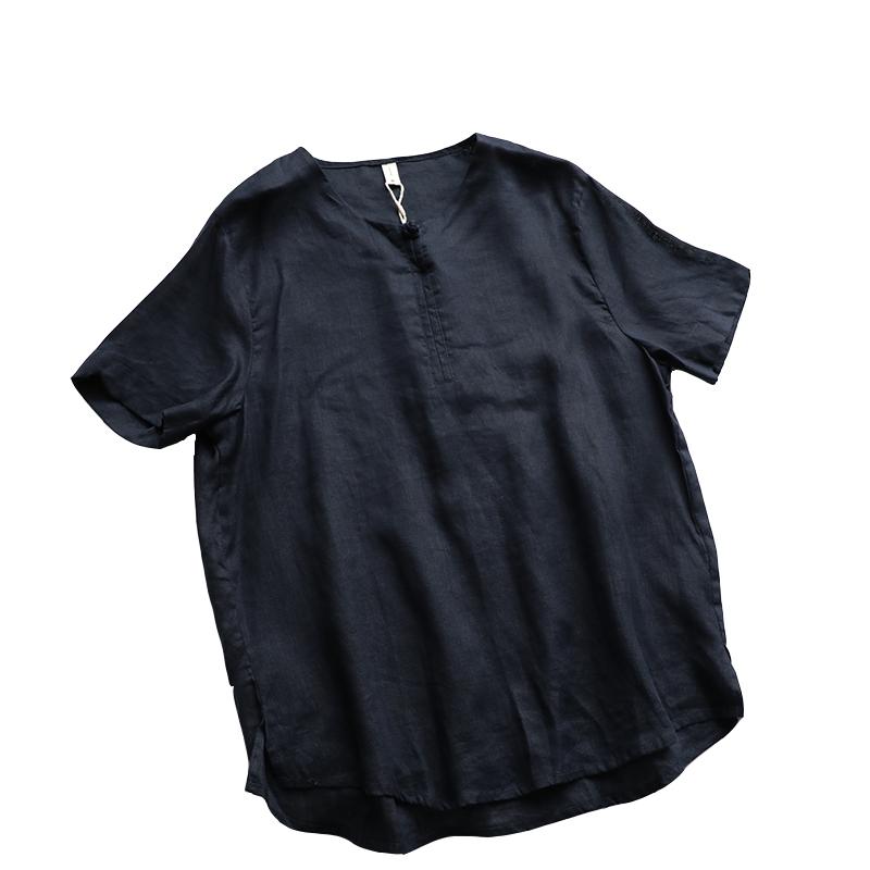 National Tide Wind Disc Buckle Design Summer Men's Trendy Casual Breathable Cool Linen Loose Short Sleeve Shirt Blouse