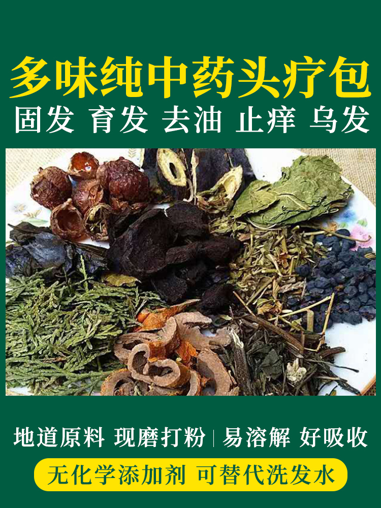 Natural tea seed powder arborvitae leaf shampoo powder Polygonum multiflorum Angelica tea bran withered hair nourishing dandruff antipruritic head treatment medicine bag water