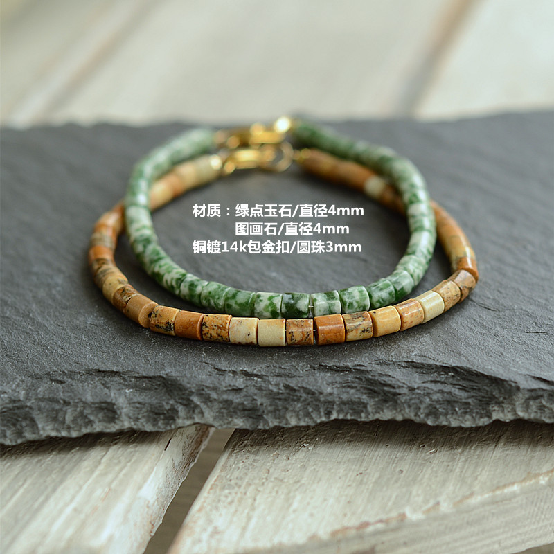 2021 new cold wind green dot jade picture stone simple retro forest couple men and women anklet anklet jewelry