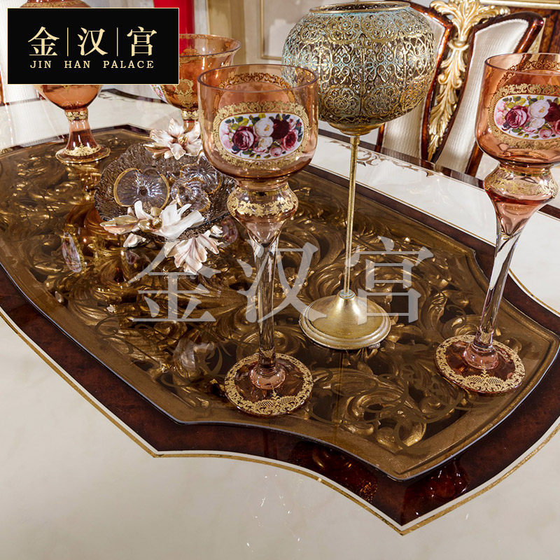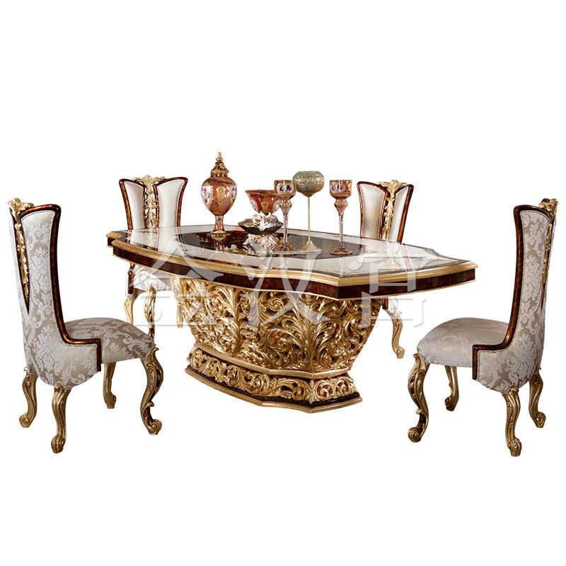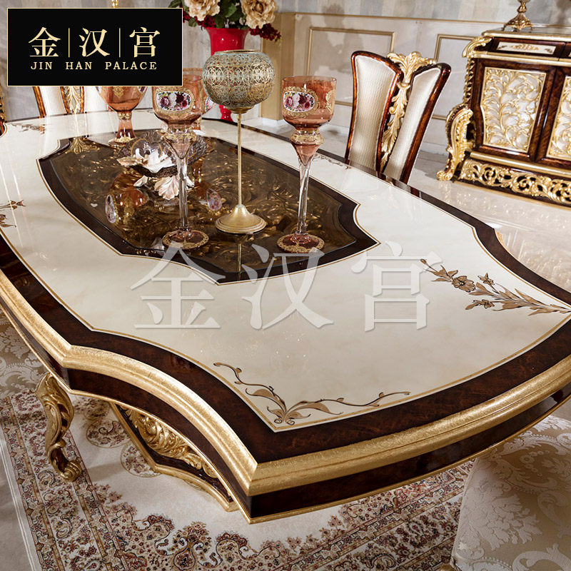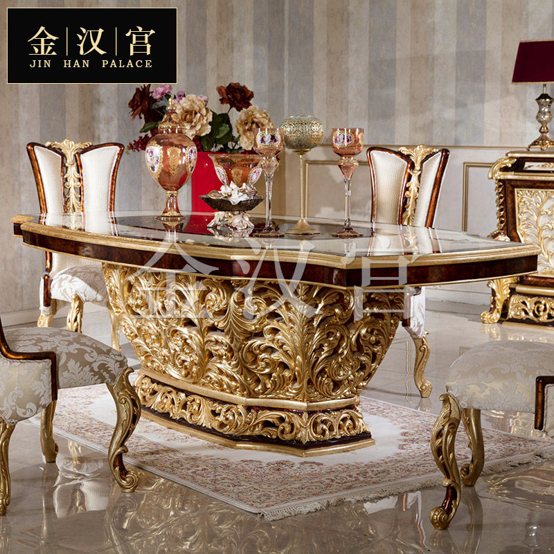 European-style luxury solid wood dining table large apartment French court gold foil dining table villa restaurant carved dining chair customization