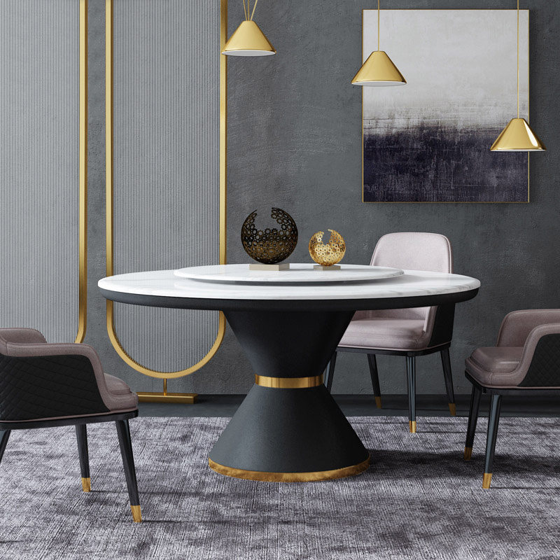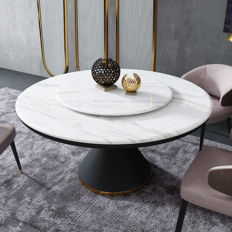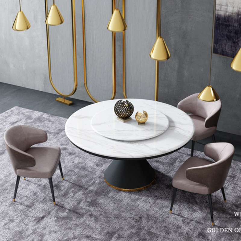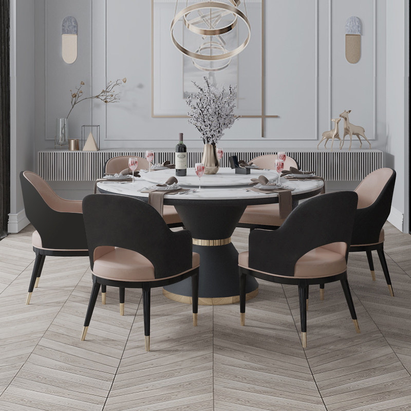Nordic light luxury marble dining table and chair combination household small apartment marble round with turntable dining table and chair set