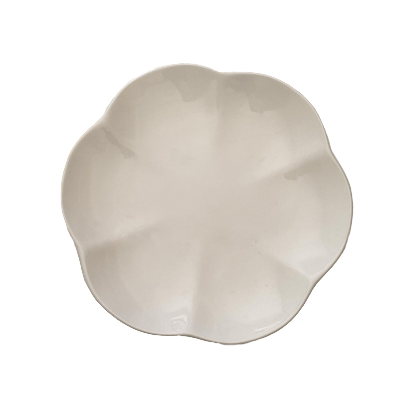 Rabbit July) Ceramic disc Ins Day-style minimalist plate pure white plum blossom Plum Blossom Sweet Ppansy Restaurant Refreshment Flat Pan