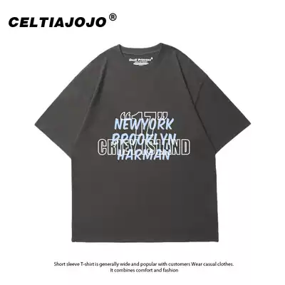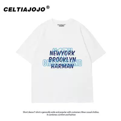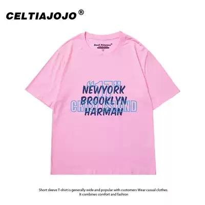 Hong Kong style ins Simple Joker Letter Print Short Sleeve T-shirt Women Large Size Loose 2021 Summer New Blue Top