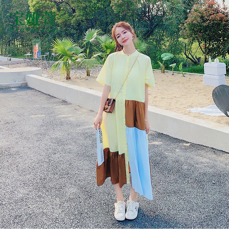 Pregnant women dress French retro - sleeved shirt dress girl 2023 summer mom loose and thin skirt