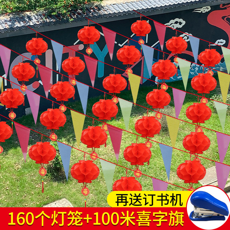 (send stapler red envelopes) 60 thickened 15# lanterns 50 m hollow happy flag (send stapler red envelopes) 80 thickened 15# lanterns 50 m hollow happy flag (send