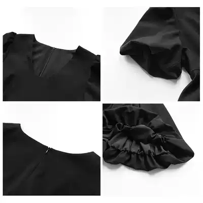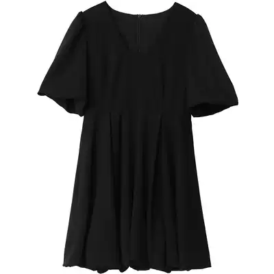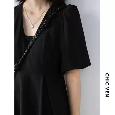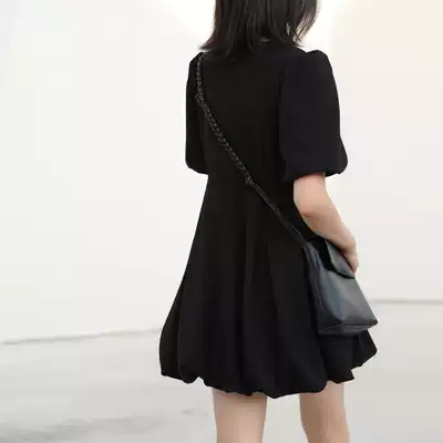 CHICVEN "About the Future" retro niche bubble sleeve flower skirt dress summer ladder collar small black dress