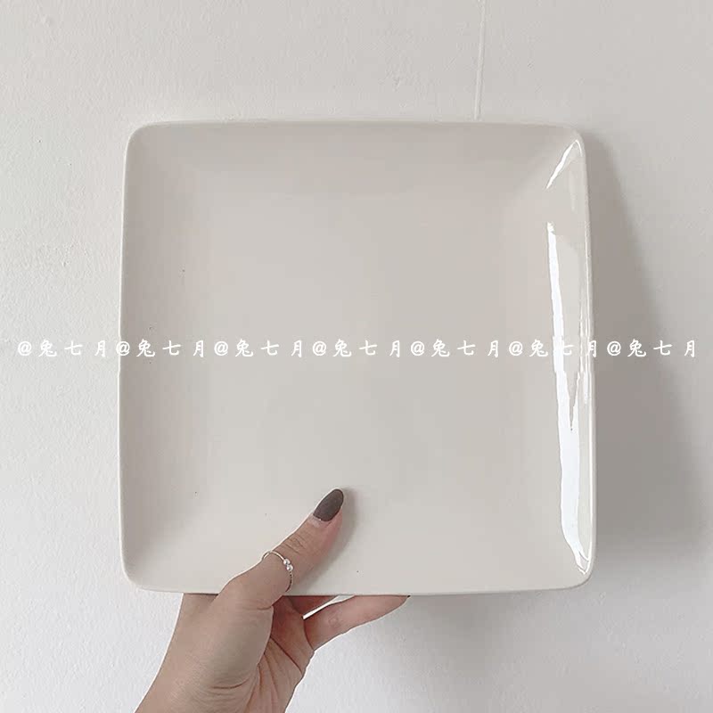Rabbit July) Inwind ceramic pan Korean style minimalist white flat pan Western dining tray Western style cutlery steak tray