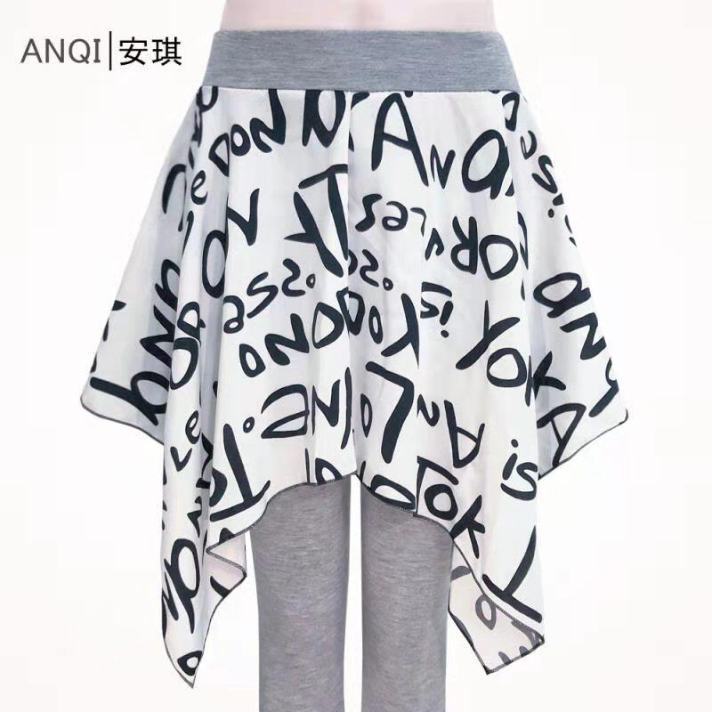 Summer spring and autumn holidays Two inside lap pants skirts female large size slim fit outside wearing tight body printed 100 pleats with skirt smoke tube pants