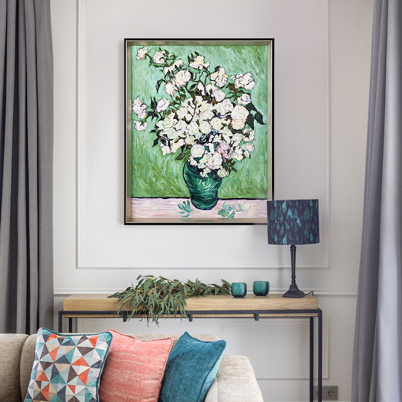 Art Van Gogh white rose living room decoration painting Xuanguan floor painting New classical hand-painted background wall mural painting