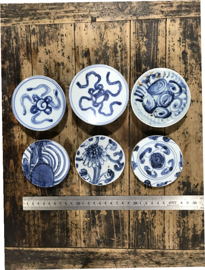 T792 Ming Qingqing flower bowl bottom tea tocup cushion tea darling ancient porcelain sheet has been polished to see fine picture bag Old and true 68 pieces-Taobao
