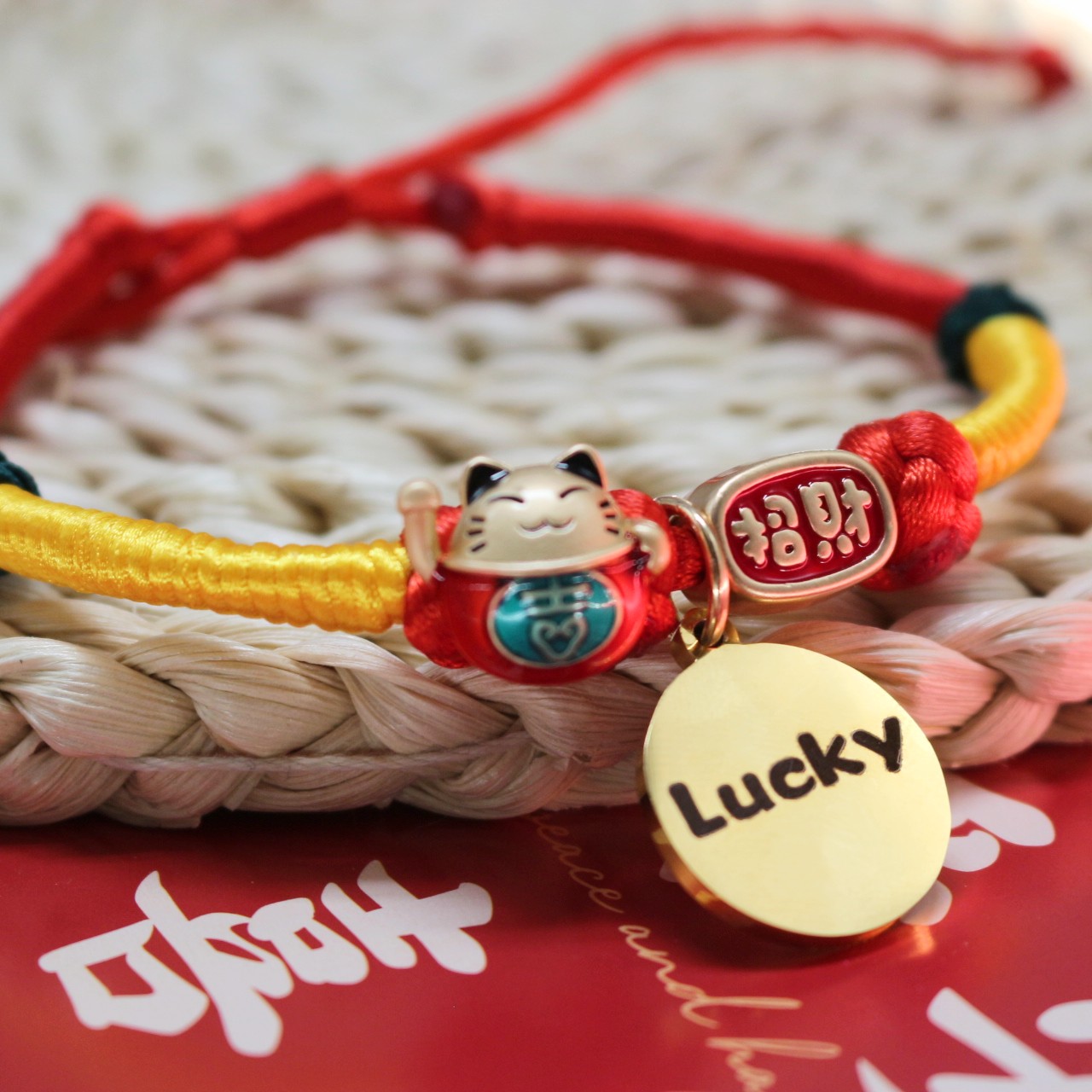 Pet cat dog collar custom brand name safe lucky necklace hand-woven red rope pendant neck ring jewelry