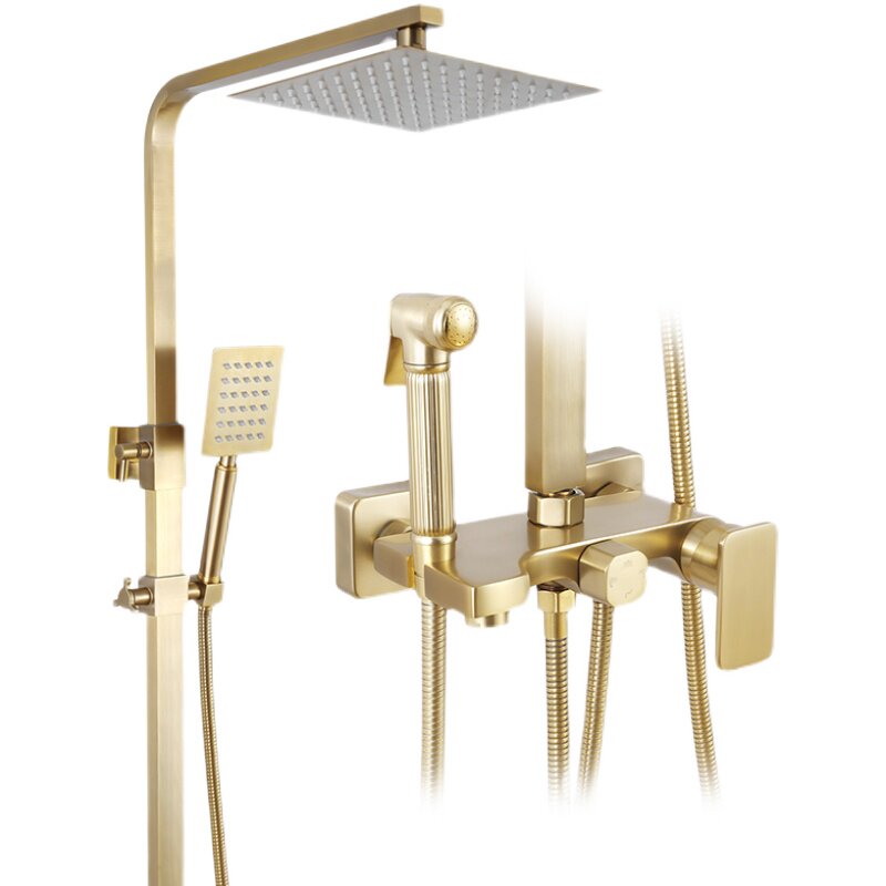 Nordic Wire Drawing Gold Shower Suit Home Minimalist Hanging Wall Style Light Lavish Full Copper Bathroom Shower Lift Booster Shower Nozzle