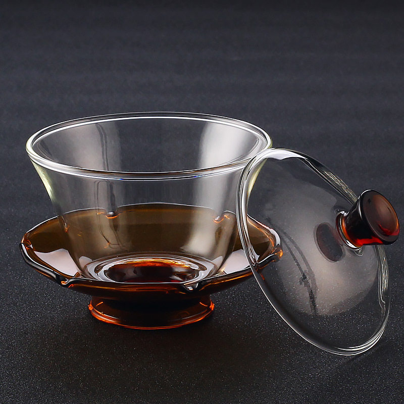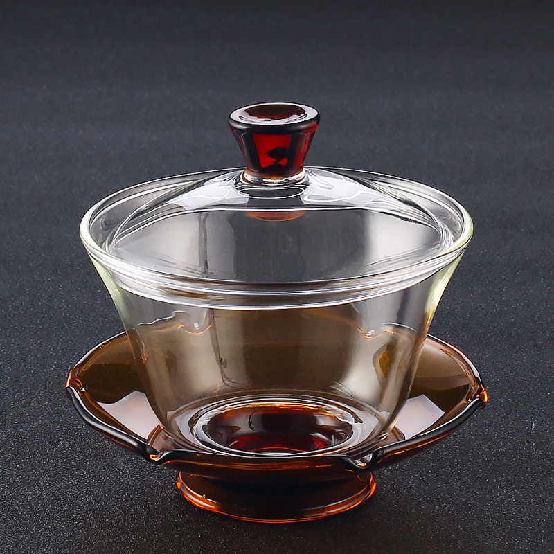 Thickened glass cover bowl Household tea three-cai tea bowl Single large heat-resistant tea cup Japanese tea Kung Fu tea set