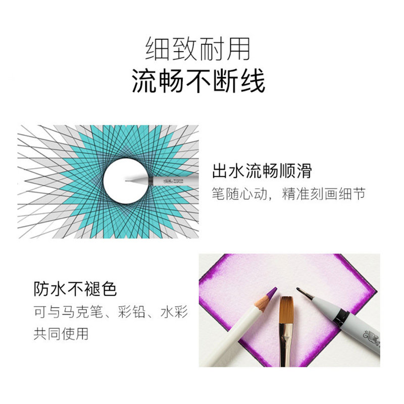 Windsor Syringes Pen Fine Arts Students Special 0 3 1 0 0 8mm 5 0 8mm Black Waterproof Hand-painted Cartoon Pen Brown Students with sketching sketching speed Write a design Drawing Architectural Drawing Hooking Pen