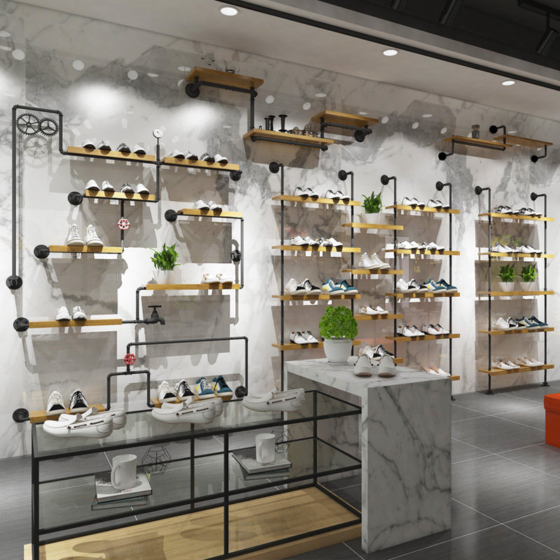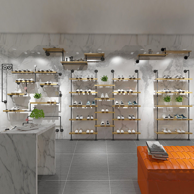 Shoe store shoe rack display stand retro solid wood on the wall children's shoe store wall-mounted floor-standing clothing rack store commercial