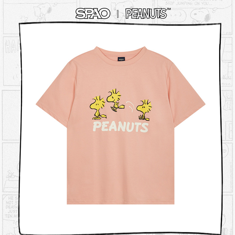 SPAOx Snoopy Snoopy joint T-shirt spring and summer couple models round neck loose short-sleeved men's and women's same T-shirt