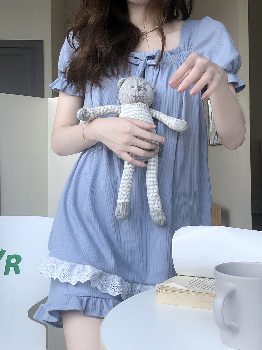 Xinbangbang Homedress 2021 new sweet home clothes cute lace puff sleeve pajamas women summer