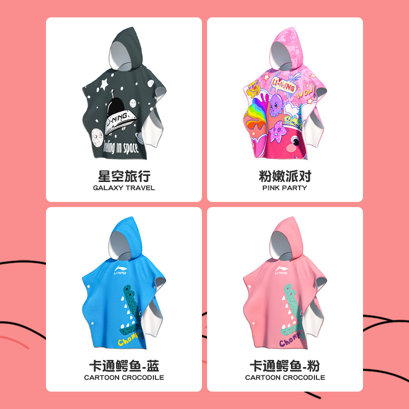 Li Ning children's swimming bath towel quick-drying absorbent bathrobe cloak bath towel boys and girls baby summer beach towel