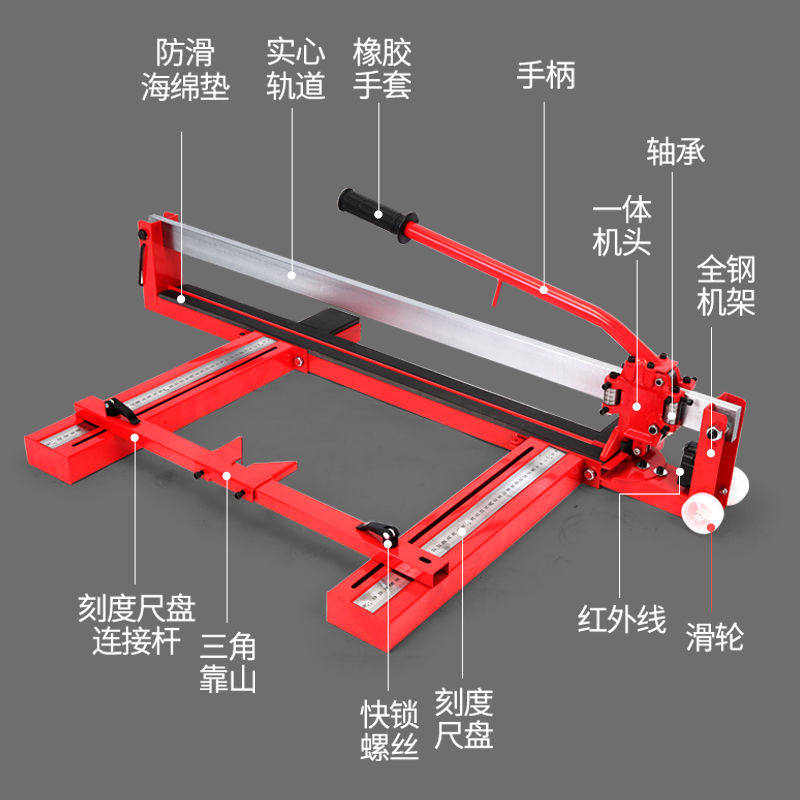 Manual Tile Cutting Machine Pushknife Accessories Big Full Veneer Rail Square Tube Leaning by Mountain Stainless Steel Gauge Subhandle Rubber Cotton Cushion